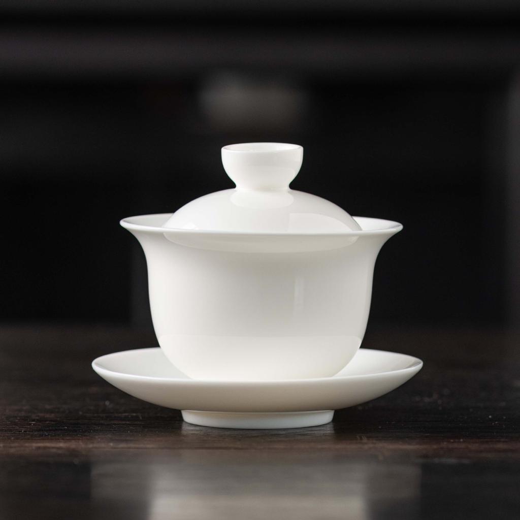 Light luxury suet jade cover bowl White porcelain tea bowl with cover Large Kung Fu household tea set Tea enterprise Sancai bowl