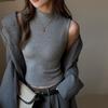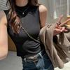 Damen formendes Tencel Tanktop mit halbem Stehkragen - Gebürstete gerade Schulter Basis-Top für Herbst/Winter