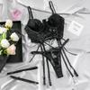 Rotes Spitzen-Bralette mit Riemchen und Strumpfband-Set