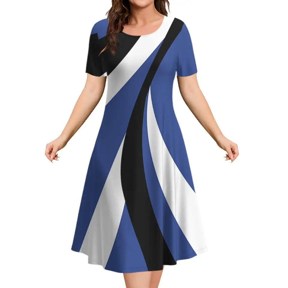 Sommer Damen Kurzarm Locker Kurz Kleid Lässig Bedruckt Mode Partykleider