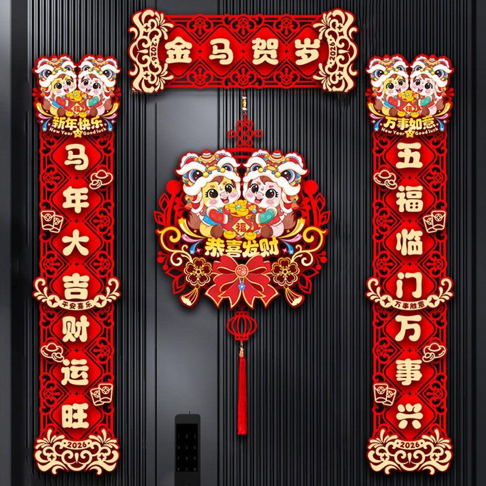 Happy New Year Horse Year Couplet Felt/Flocking Door Stickers Durable Horse Year Banner