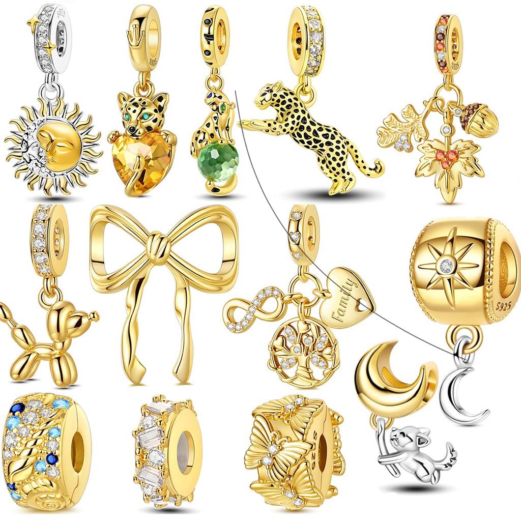 Gold Series DIY 925 Silver Inlaid Zirconium Sun Leopard Pendants for Bracelet Jewelry Gift