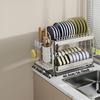 For Dish rack, Stainless steel dish drainer, Multi-functional 2-tier dish drying rack with draining tray, utensil holder, hooks