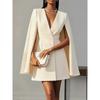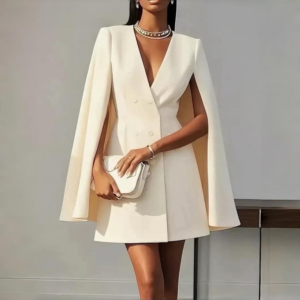 LYRIA Damenmode Pendler Einfarbig Blazer Kleid Büro Zweireihig Taille Partykleid Elegant V-Ausschnitt Schalkragen Umhang Ärmel Midi Kleid