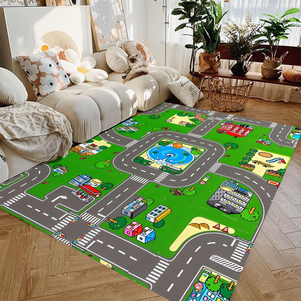 Kids Play Mat Car Mat for Boys and Girls Highway City Traffic-Themed Rugs for Kids Toy Cars Kids Rugs for Playroom Non-Slip Rug