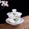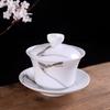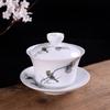 Handbemalte blau-weiße Gaiwan-Teeterrine aus Porzellan, chinesisches Keramik-Teeschalen-Set, abgedeckte Schale mit Deckel, Tasse und Untertasse