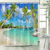 Ocean Landscape Shower Curtain Beach Palm Trees Parrots Dolphins Sea Waves Nature Scenery Bath Curtains Fabric Bathroom Decor