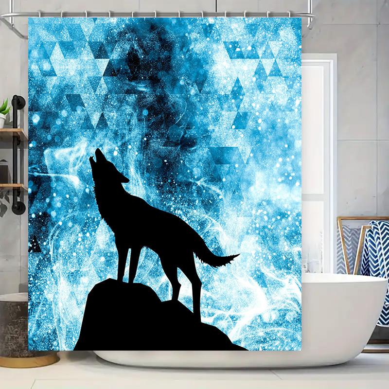 Stylish Shower Curtain Blue Galaxy Wolf Design for Bathrooms Decorate Your Space with Magic