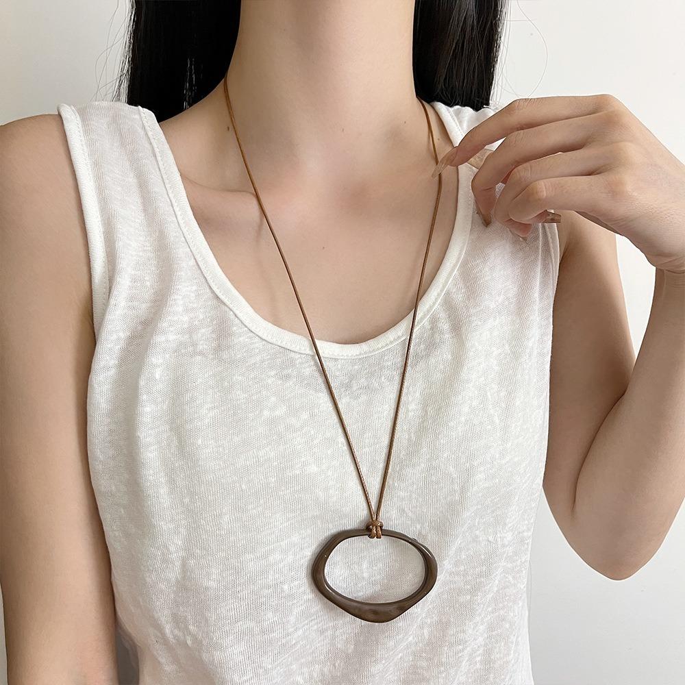 Long Leather Rope Women Necklace Geometric Pendant Necklaces Fashion Collarbone Chain