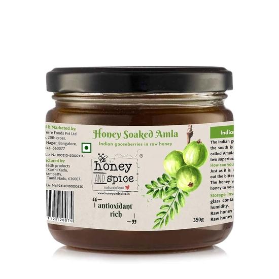 Honig und Gewürz Honiggetränkte Amla (350g) | Indische Stachelbeeren in rohem Honig | Amla Murabba reich an Vitamin C | Immunstärker | Roh und rein |