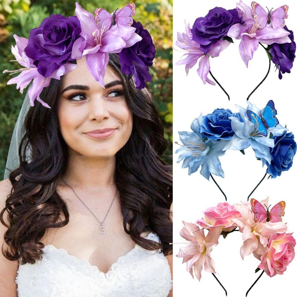 Butterfly Design Flowers Headband Handmade Rose Flower Crown For Women Girl