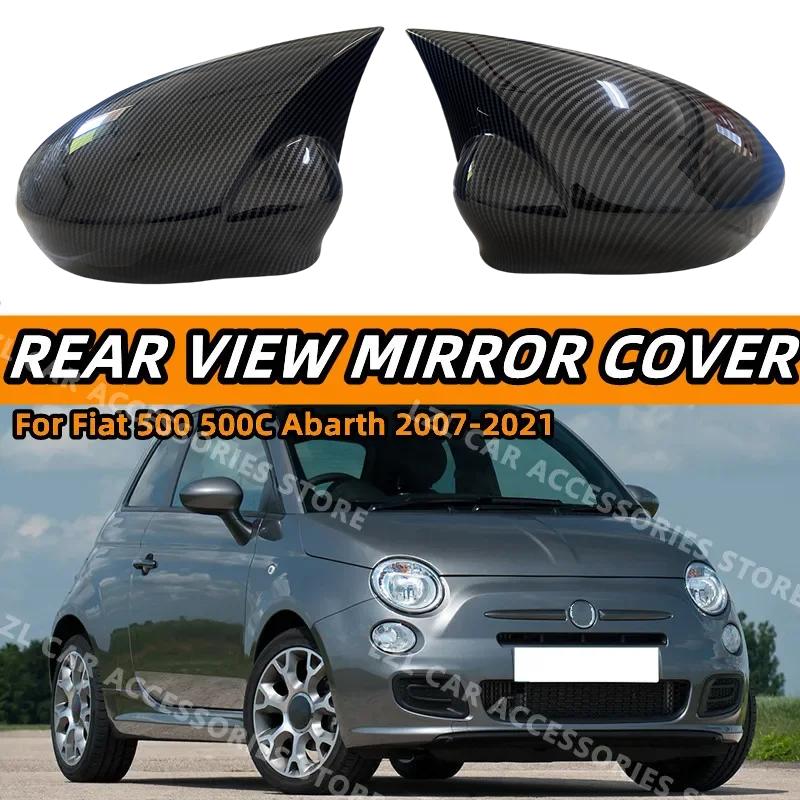 Pair Horn Side Wing Mirror Cover Caps For Fiat 500 500c 2007- Rearview Mirror Cover Shell Case Trim Add on Car Accessories