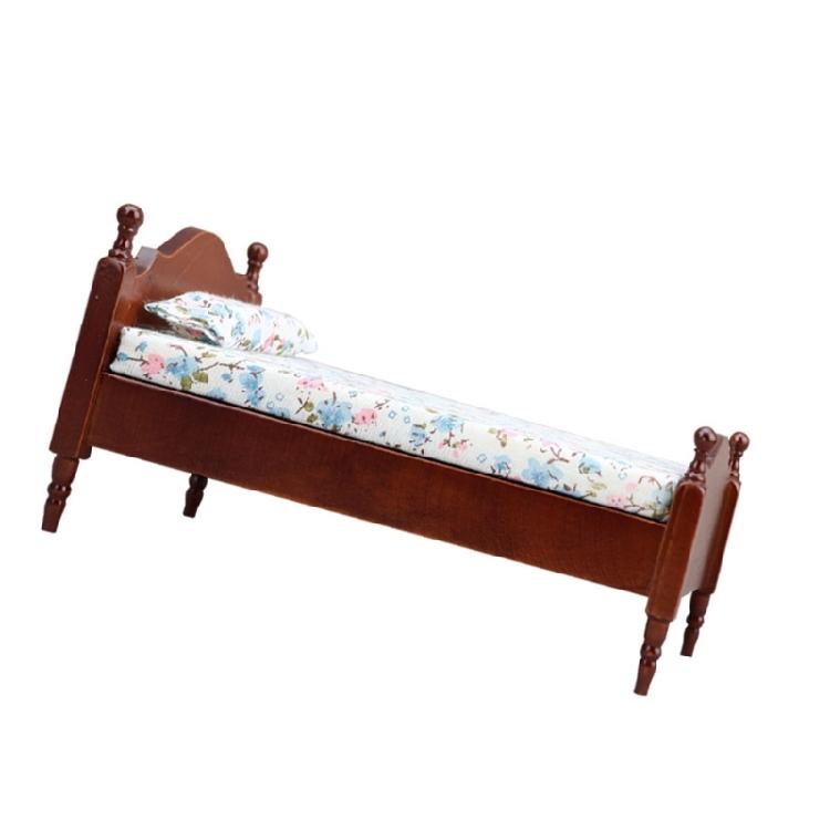 Detailliertes Bettzeugset einschließlich realistischem Einzelbett mit geschnitztem Holzrahmen
