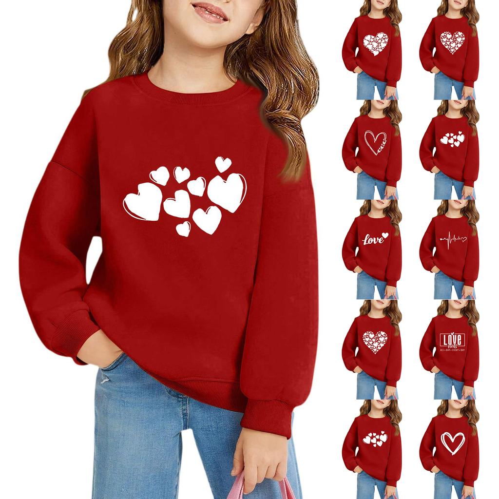 Mädchen Rundhals-Pullover für Kinder Bedruckte Baby-Oberteile Valentinstag