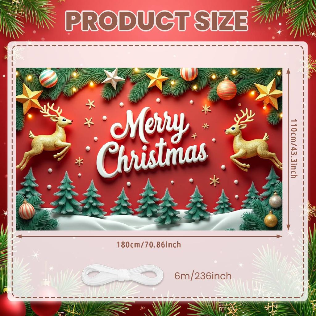 Festive Banner Pine Branch Reindeer Banner Merry Christmas Banner Golden Reindeer For Indoor Celebration Festive Event Office