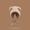 Cute Bear Ear Hat Women Y2k Knitted Beanies Autumn Winter Lace Up Warm Ear Protection Cap Fashion Warm Knitting Hat