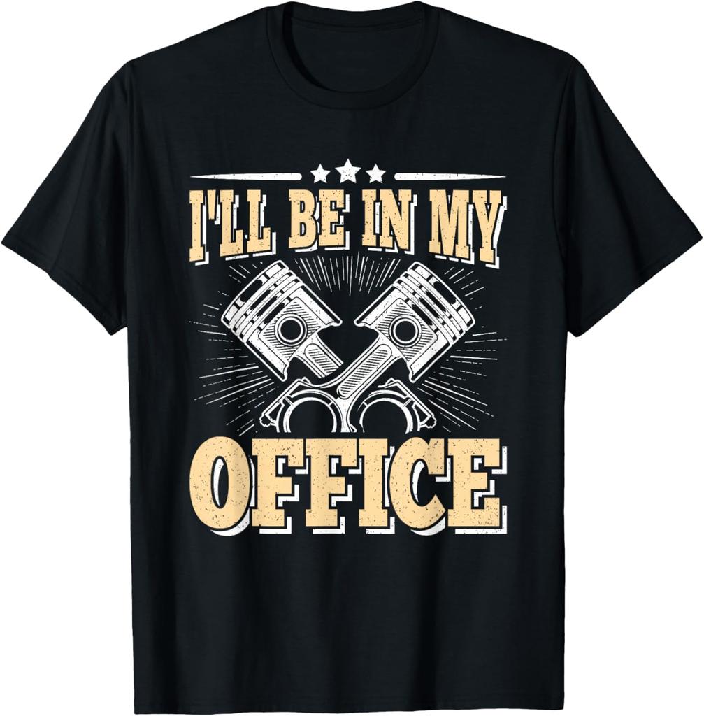 I'll Be In My Office Piston Mechanic Funny Graphic Tee Casual Cotton Short Sleeve T-Shirt for Men