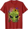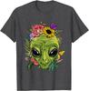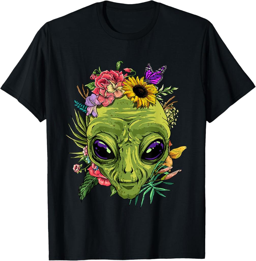Alien mit Blumen Grafik-T-Shirt Herren Lässig Sommerausflug Rundhals-T-Shirt