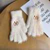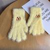 Niedliche lächelnde Gesichter bestickte Plüschhandschuhe für Damen im Winter Fellartig und Samt Warm und Kältefest Studenten Radfahren Touchscreen-Handschuhe