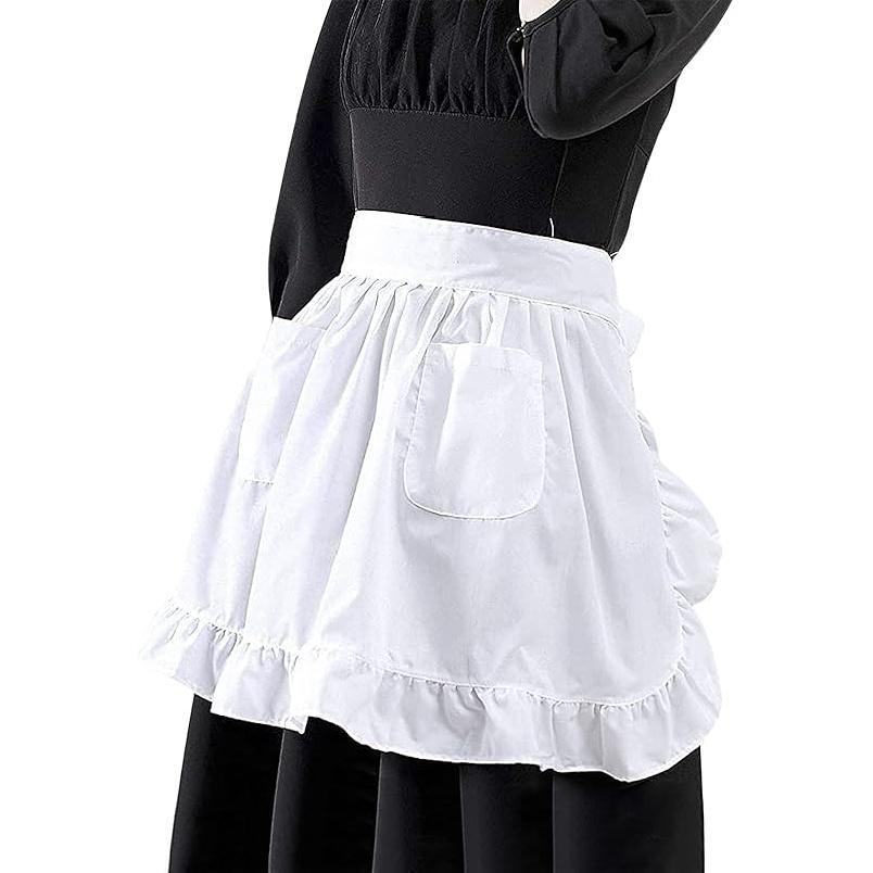 Damen Halbschürze mit zwei Taschen Weiße Haube Pilgerhut Kolonialhut Handmaid's Tale Kostüm Koloniales Kleid