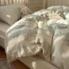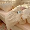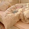 French Style Lace Bedding Set 3/4PCS - Wash Cotton Duvet Cover & Pillowcases Soft Breathable Active Printing for Home Bedding