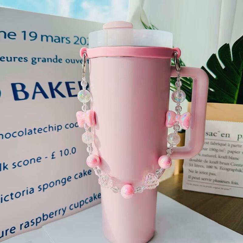 Neuer Tragbarer Wasserflaschen-Tragegurt-Halter Für 6-10cm Niedliche Rosa Schleife Silikon-Schlaufe Geeignet Für Stanley 30oz/40oz Schnabeltasse