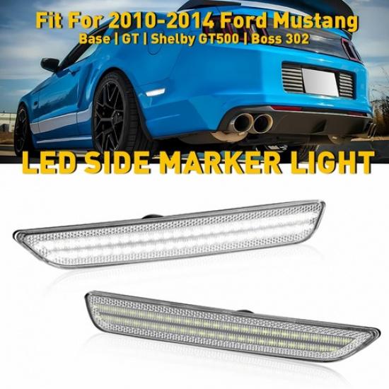 For Ford 2015- Mustang Clear White LED Rear Side Marker Signal Lamps Lights