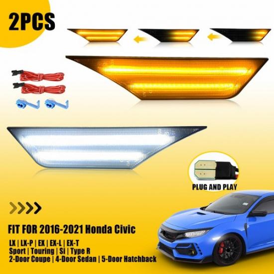 2x For 2016 17- Honda Civic Sequential LED Side Marker Lights Amber White EA