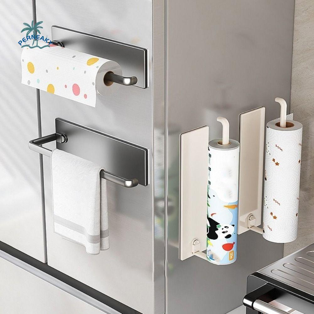 Wall Mounted Magnetic Paper Towel Holder Space Saving Plastic Roll Paper Storage Rack Strong Magnet Backing Punch Free