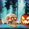 Halloween Gothic Glowing Skull, Human Skull with LED Light Up Glowing Eyes, Lighted Novelty Resin Statue, for Indoor Bar Holiday Horror Haunted House