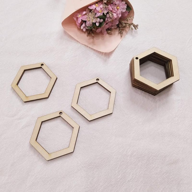 30PCS DIY Unfinished Hexagon Wood Earring Findings,Laser Cut Natural Wood Earrings Blanks (2")