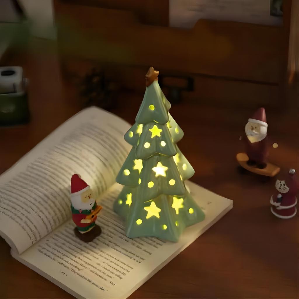 Christmas Cute Ceramic Star Christmas Tree Night Light Bedroom Desktop Decoration Ornament Atmosphere Light Birthday Gift