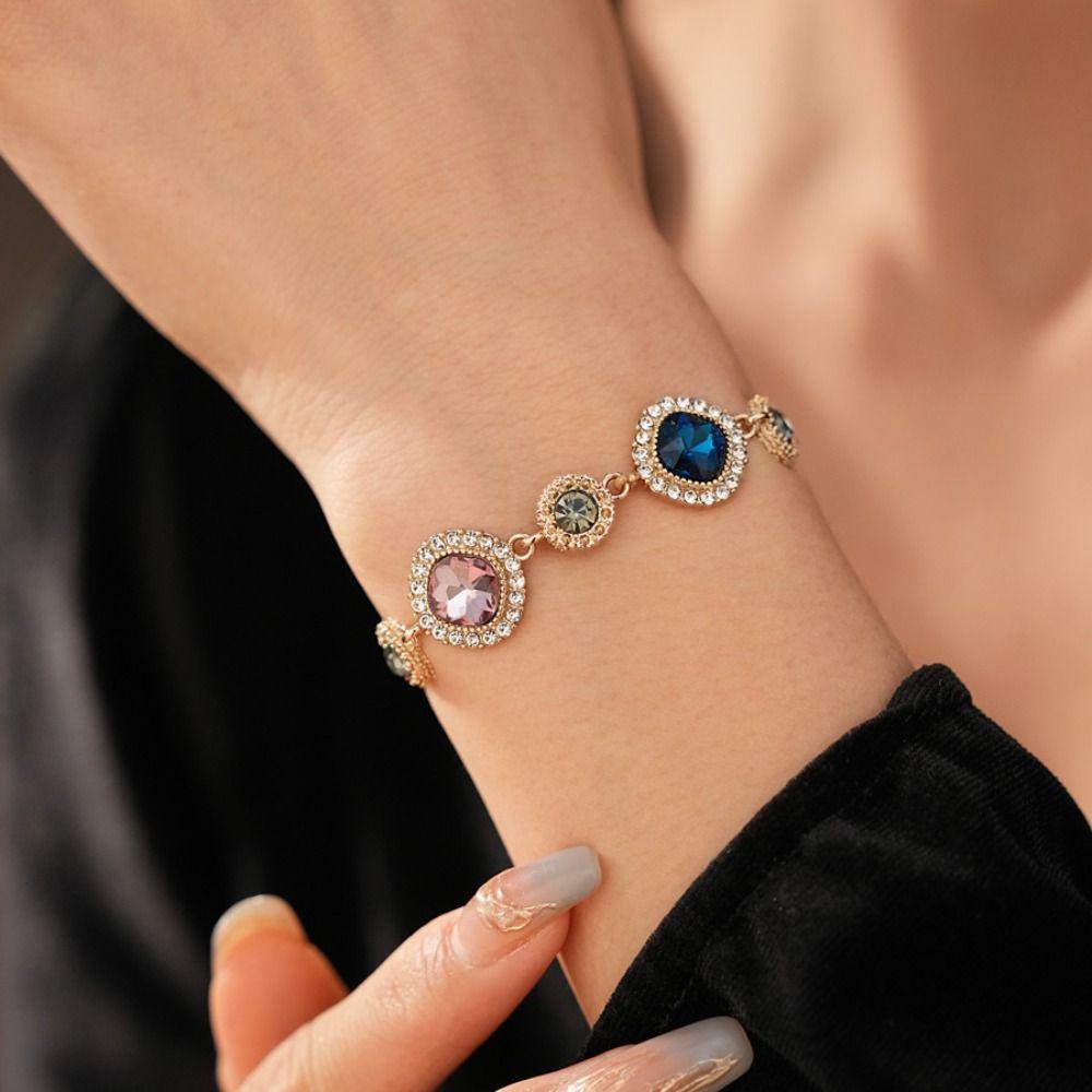 Glänzendes Vintage Strassarmband Gold Geometrischer Armreif Mode Zirkonarmband Partyschmuck