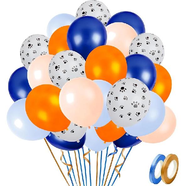 Blue and Orange Balloons Set, 60PCS Blue Theme Balloons, 12-Inch Pastel Orange, Navy Blue, Paw Print Balloons for Girl Boy Baby Shower Birthday Party