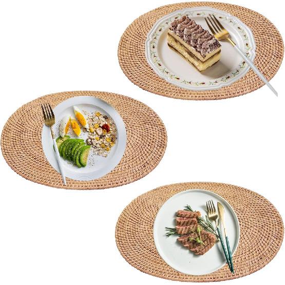 Set of 2 Oval 15.7x11.8IN Natural Handmade Rattan Placemats Rattan Insulation Heat-Resistant Mat Pot Holder Tripod