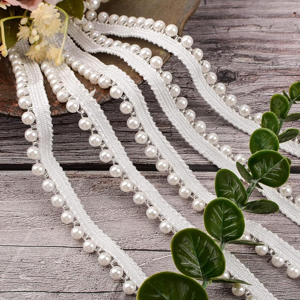 6mm Pearl Bead Tassel, Fringe Lace Edge Trim Ribbon, 10 Yards Vintage Style White Edging Trimmings Fabric Embroidered Applique Sewing Craft