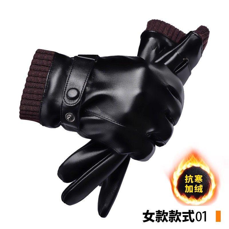 Leather gloves, windproof, waterproof, piled, thickened and warm for men and women, riding, driving, non-slip motorcycle cotton gloves