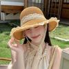 Summer colored wood beads Yafeng straw hat sunscreen 2025 new seaside sunshade brim bucket hat foldable