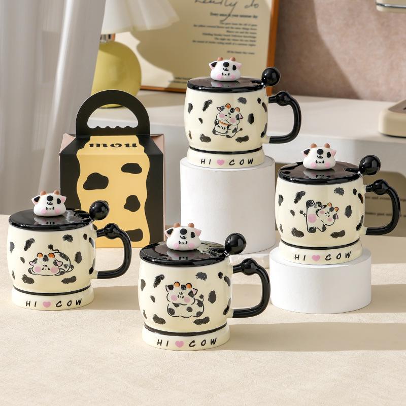 Cute Girl Heart Cow Mug With Lid Office Water Cup Girl High Value Household Coffee Cup Ceramic Cup