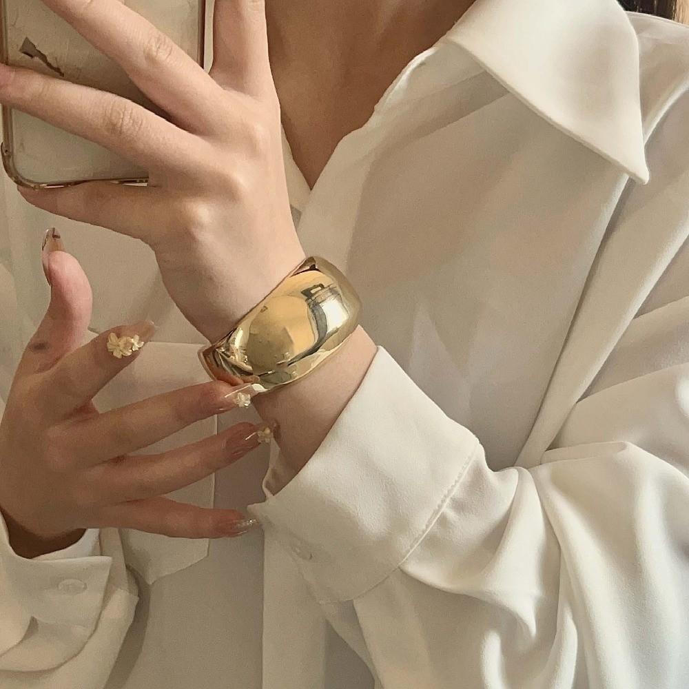 Exaggerated Metal Arc-shaped Bracelet Glossy Surface Women's Wrist Jewelry Festival Gifts