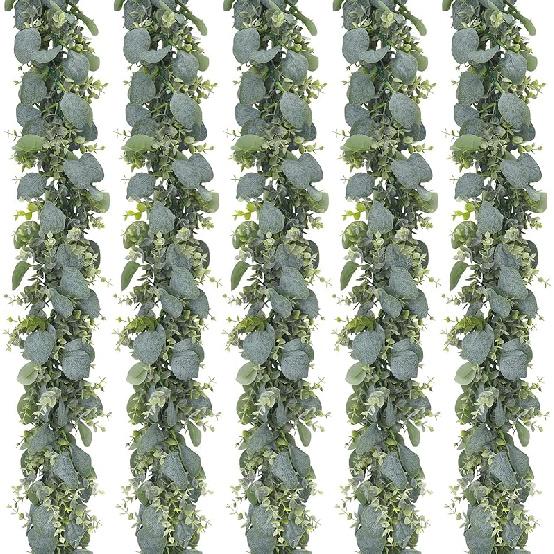 CEWOR 5pcs 5.5ft Artificial Eucalyptus Garland Fake Silver Dollar Eucalyptus Greenery Garland Vines Table Runner for Wedding Arch Backdrop Table