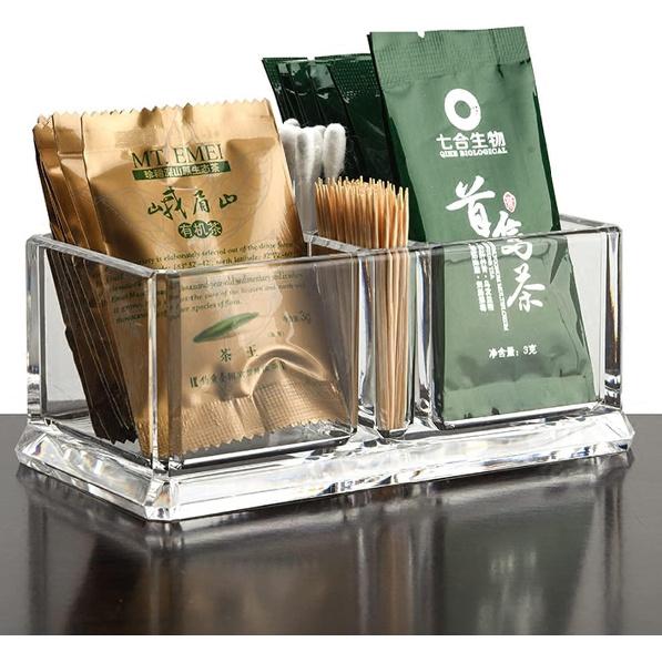 Clear Acrylic Two Lattices Tea Bags Holder Coffee Sugar Bag Case Guest Room Storage Boxes YTBH-001