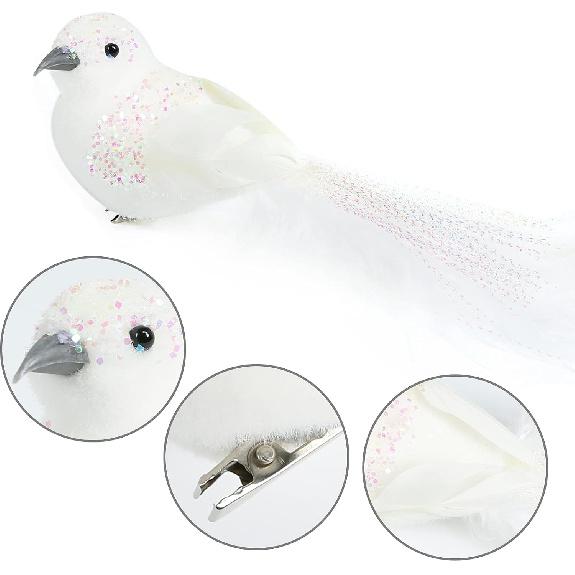 Ogrmar 12Pack Artificial Birds Ornaments Handmade Christmas Artificial Dove Birds with Sequins Clip on Christmas Tree for Xmas Tree Wreaths Garland
