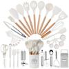 34pcs Premium Silicone Kitchen Utensil Set With Wooden Handles and Knife Heat-Resistant Non-Stick Friendly Cooking