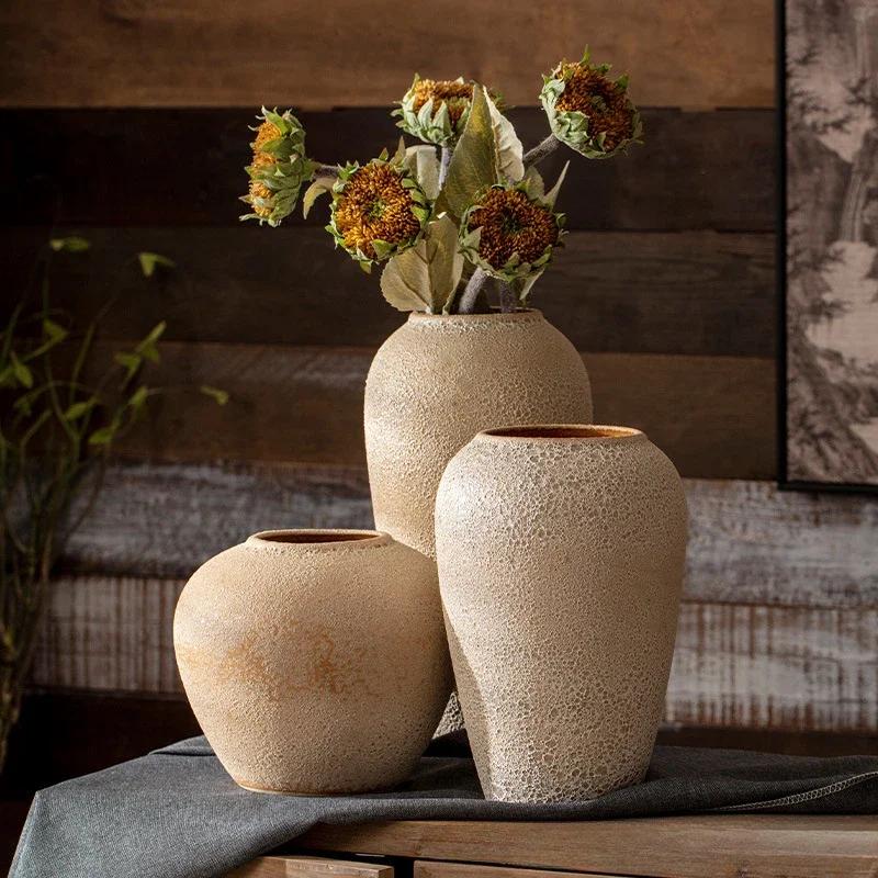 Ländliche Einfachheit Keramik Hydroponik Vase Retro Altmodisch Eingang Schreibtisch Porzellan Ornament Grobkeramik Heimdekoration