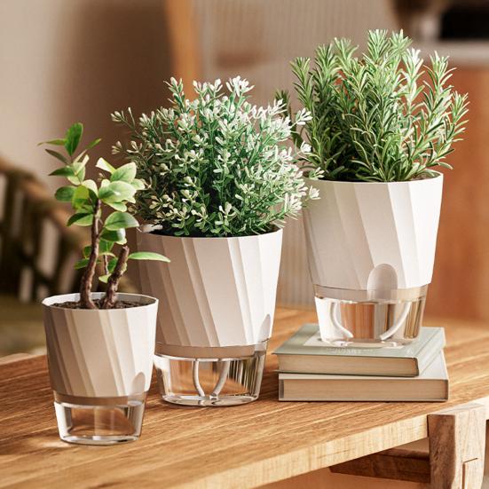 Selbstbewässernder Pflanztopf Blumentopf mit transparentem Reservoir Pflanzgefäß mit Dochtschnüren und Drainagelöchern für Orchideen Afrikanisches Veilchen Sukkulenten Zimmerpflanzen