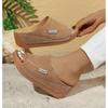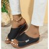 Bequeme Damen Keilsandaletten Sommer Schwarz PU Slip-On Plateau Schuhe mit Korkfußbett Zehenfrei Lässige Sandalen