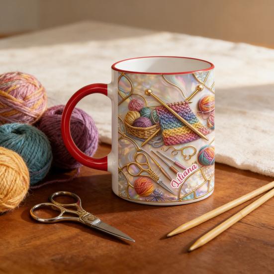 Strick- und Nähwerkzeuge Tasse 11oz Personalisierte Kaffeetasse mit Nähmaschine- und Garn-Drucken Nähgeschenk für Frauen