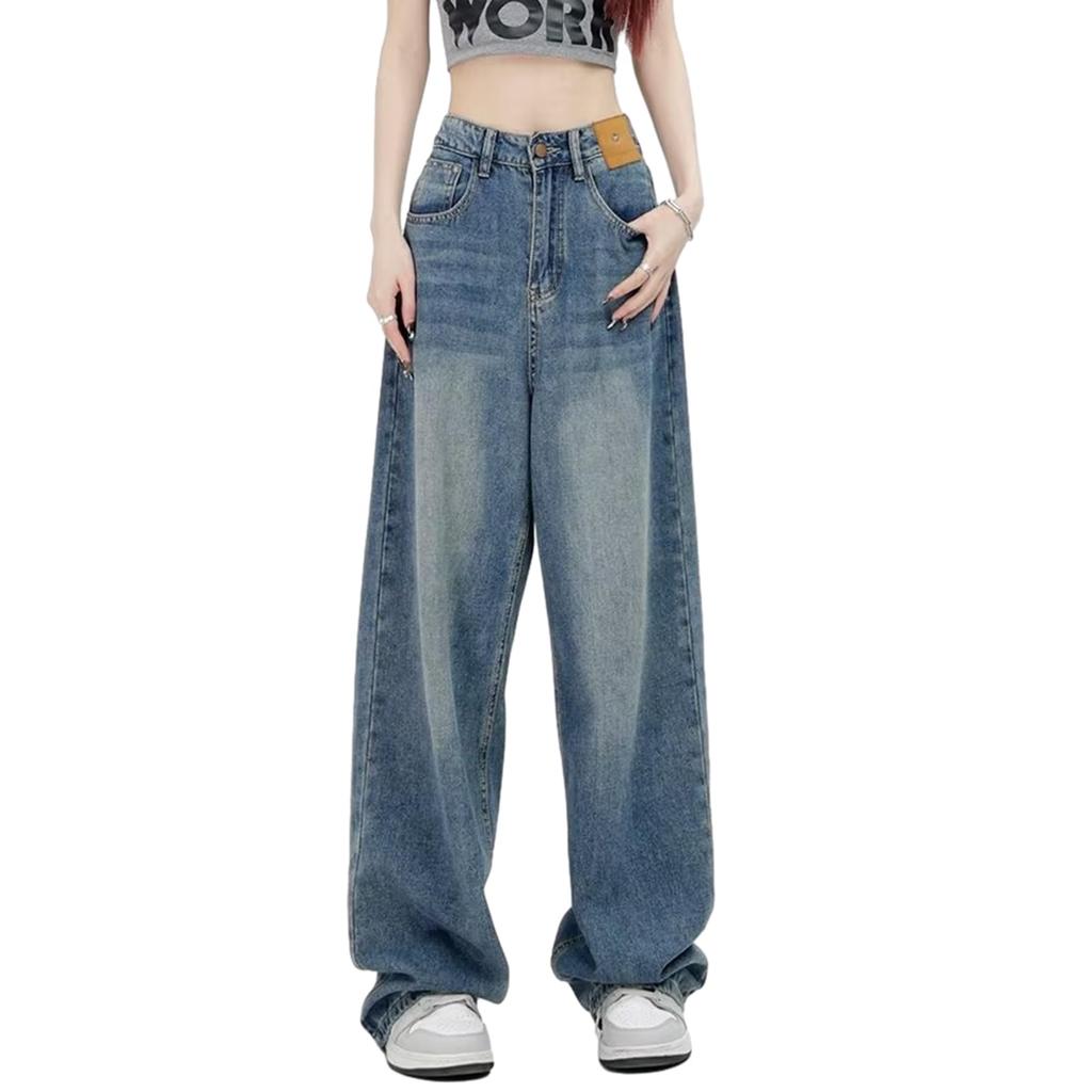 HuuMeNEIDOO Denim Uni Gerade Plus Locker Koreanisch Perfekt für und Winter Damen Weite Hosen, Farbe, Bein, Größen, Passform, Mode, Pendeln, Frühling,