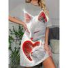 Oversized T Shirt Dress Black Cat Heart Pattern Casual Wear For Women